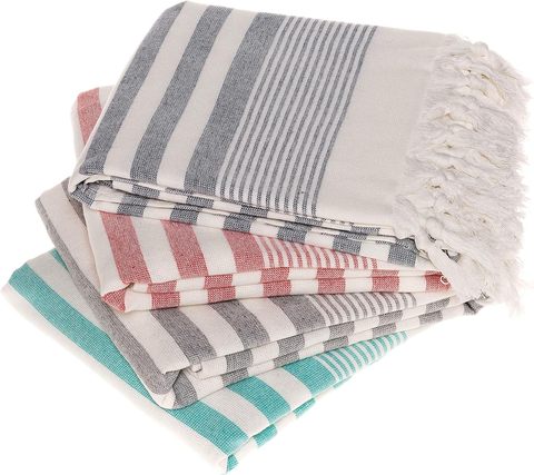 Custom Biologisch Katoenen Turkse Handdoeken Oversized Strandlakens Wit 100% Turks Katoen Gestreept Met Kwastjes Grote Strandlaken